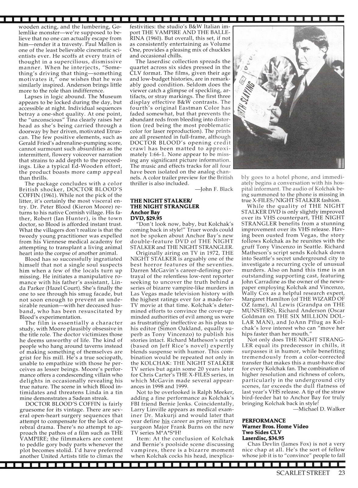 Finally, I wish to make mention of Rick McKay, also a guest writer for Scarlet Street, who passed away at the end of January. Mr. McKay contributed a handful of articles to the magazine, most notably interviews with David Manners and Fay Wray and it was a shock to hear of his passing, especially being still so young and vibrant and heavily involved with his work on Broadway. Rick McKay will definitely be missed and I wish to dedicate this issue posting to his memory.